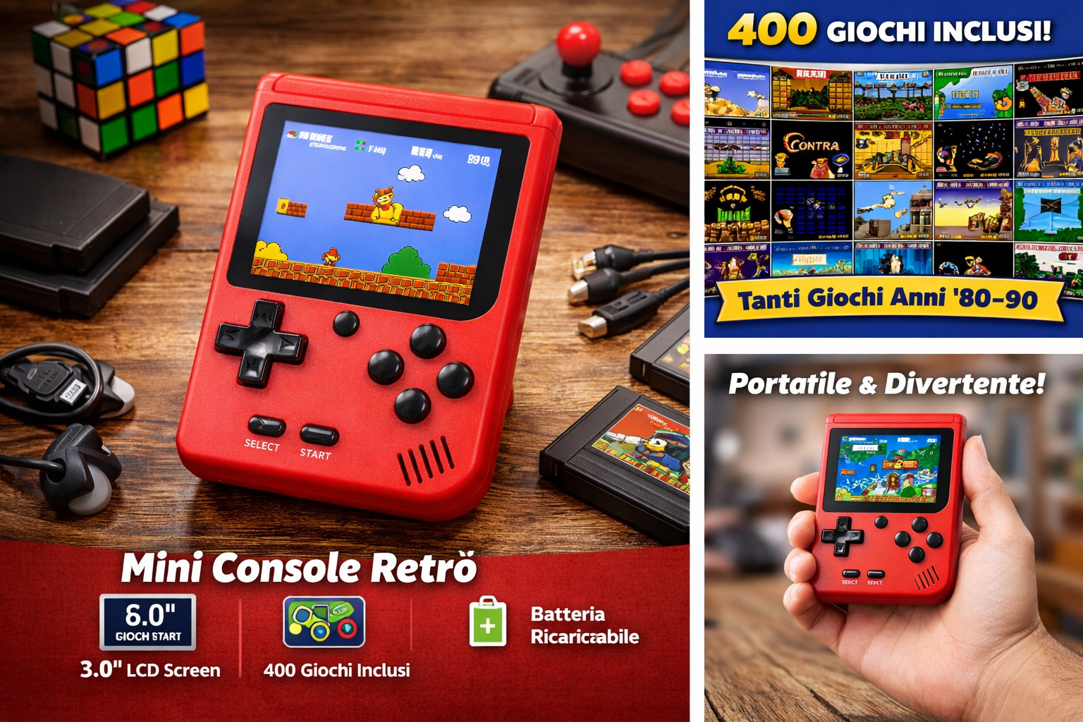 ✅ Una console retrò portatile con oltre 400 giochi classici sempre pronti.